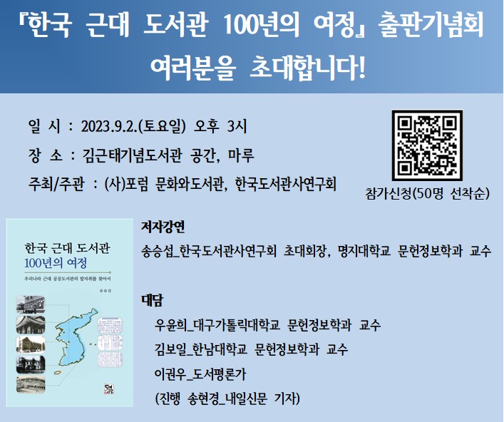 주 제 : 한국 근대 도서관 100년의 여정출판기념회