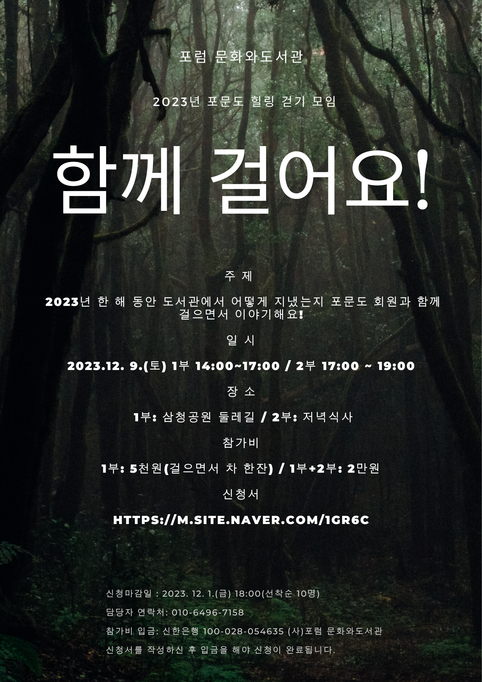 ○ 주제 : 2023년 한 해 동안 도서관에서 어떻게 지냈는지 포문도 회원과 함께 걸으면서 이야기해요!