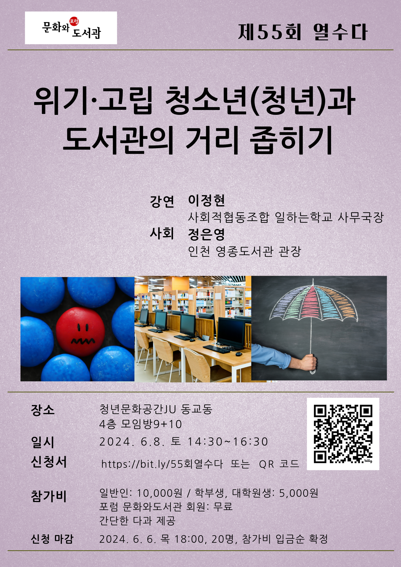 제55회 (사)포럼 문화와도서관의 <열혈 사서들의 즐거운 수다(이하 열수다)>에 초대합니다!!!