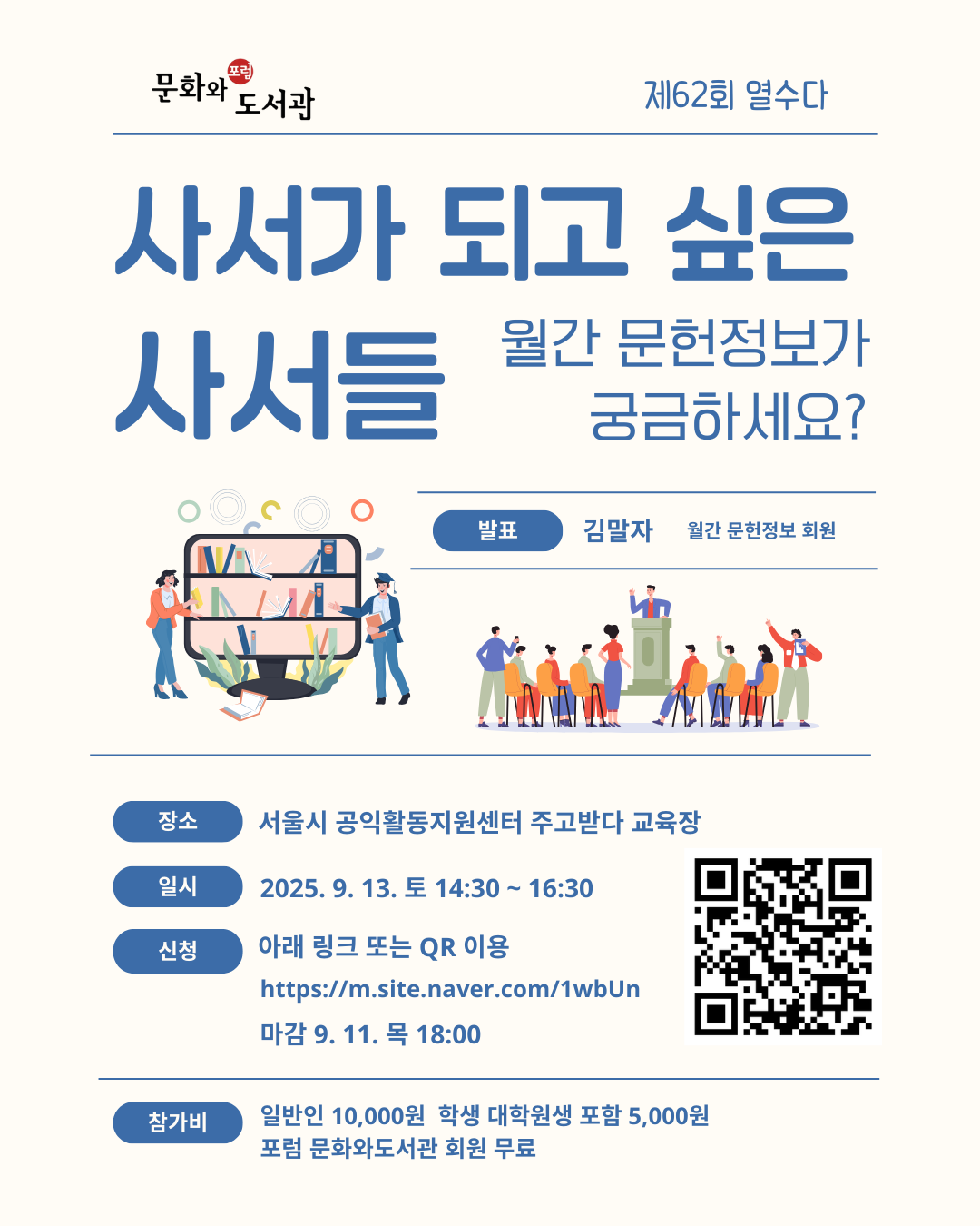 제62회 (사)포럼 문화와도서관의 <열혈 사서들의 즐거운 수다(이하 열수다)>에 초대합니다!!!